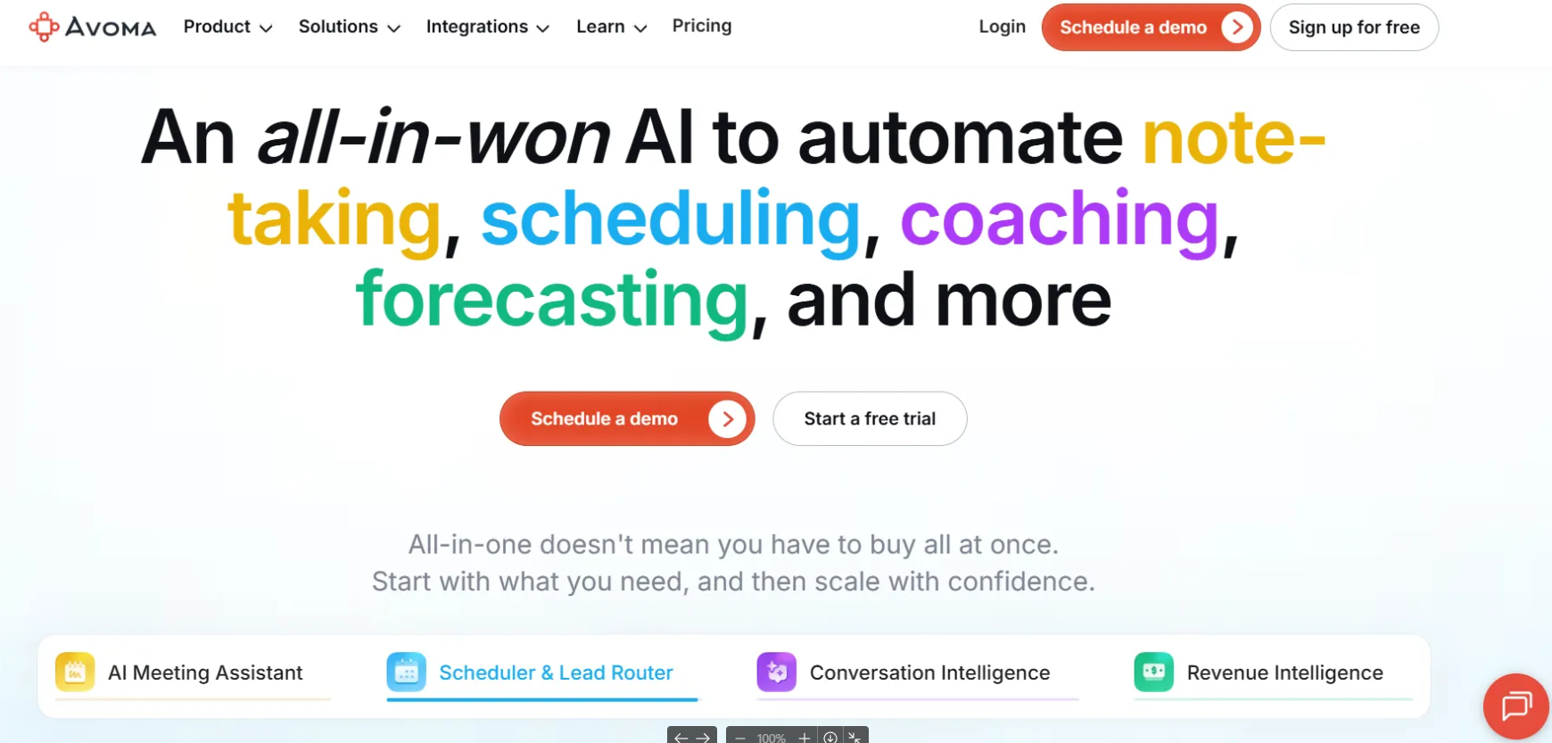 Avoma bridges the gap between your calendar and your notes. It tries to get you to prepare an agenda before the call (novel concept, right?) and then organizes your notes by topic automatically. It’s great for mid-market teams that crave a bit more structure in their day-to-day.