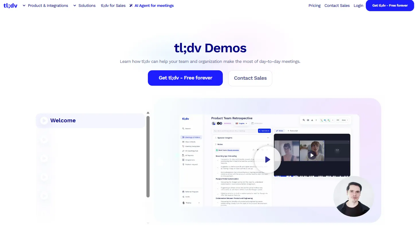 tl;dv is a video-first platform. Instead of sending a long email, you just clip the 30 seconds where the customer complained about a feature and Slack it to the product manager. It’s the top recommendation for teams who want the benefits of AI note takers for sales teams on a startup budget.