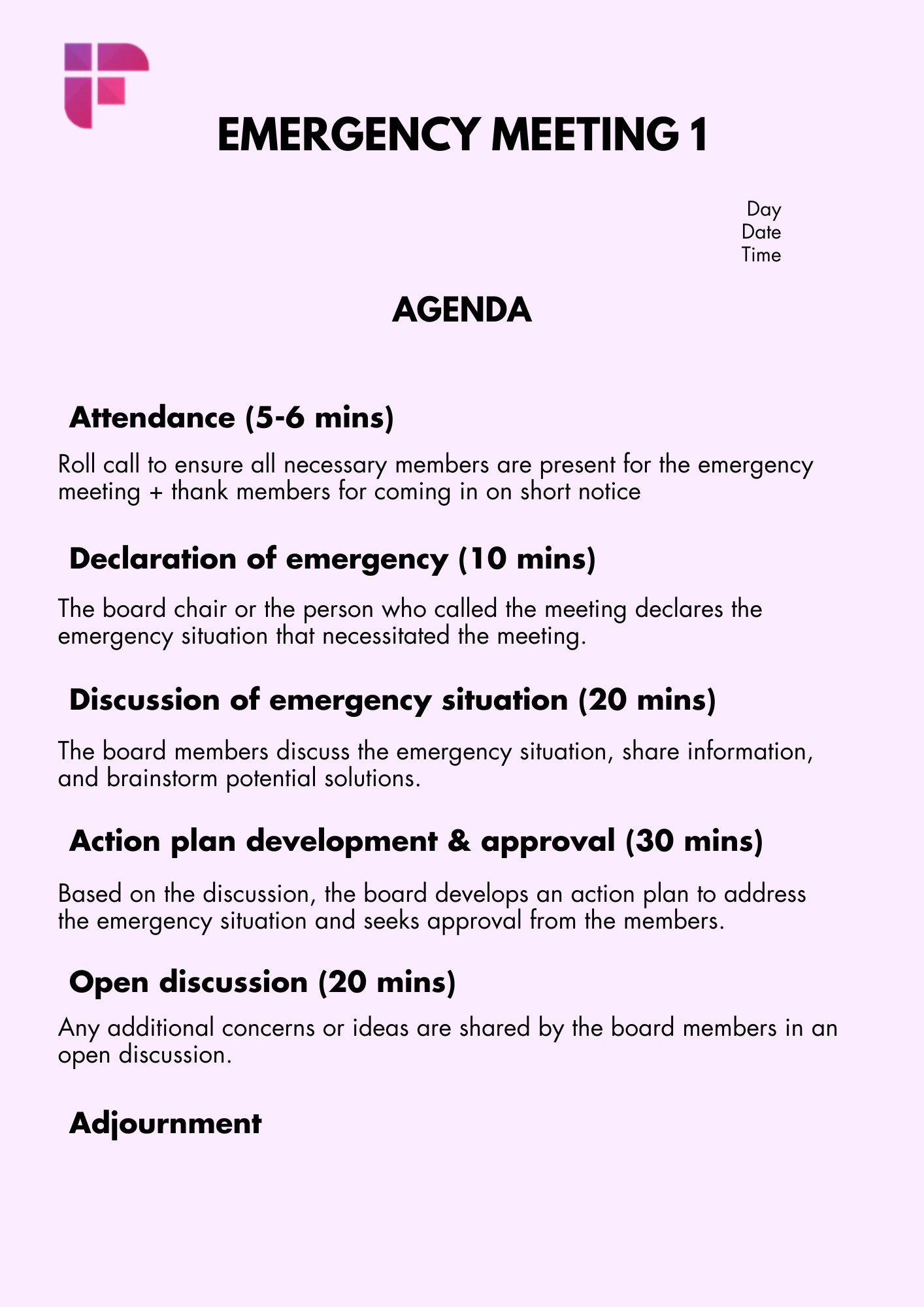 By the end, you'll know what it takes to navigate these high-pressure situations successfully and have an emergency meeting agenda template to save and use in the future (if ever needed)!