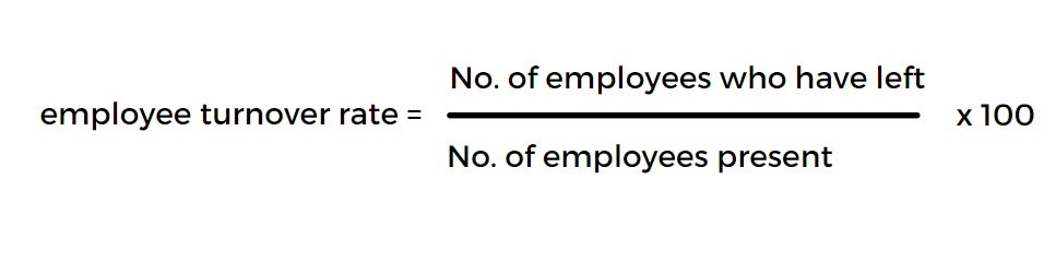 The commonly used formula to calculate the employee turnover rate is to first consider a specific period of time and then dividing the number of employees who left the organization in that time period by the number of employees present on the first day of the considered time period. This value then needs to be multiplied by 100 to get the final turnover rate.