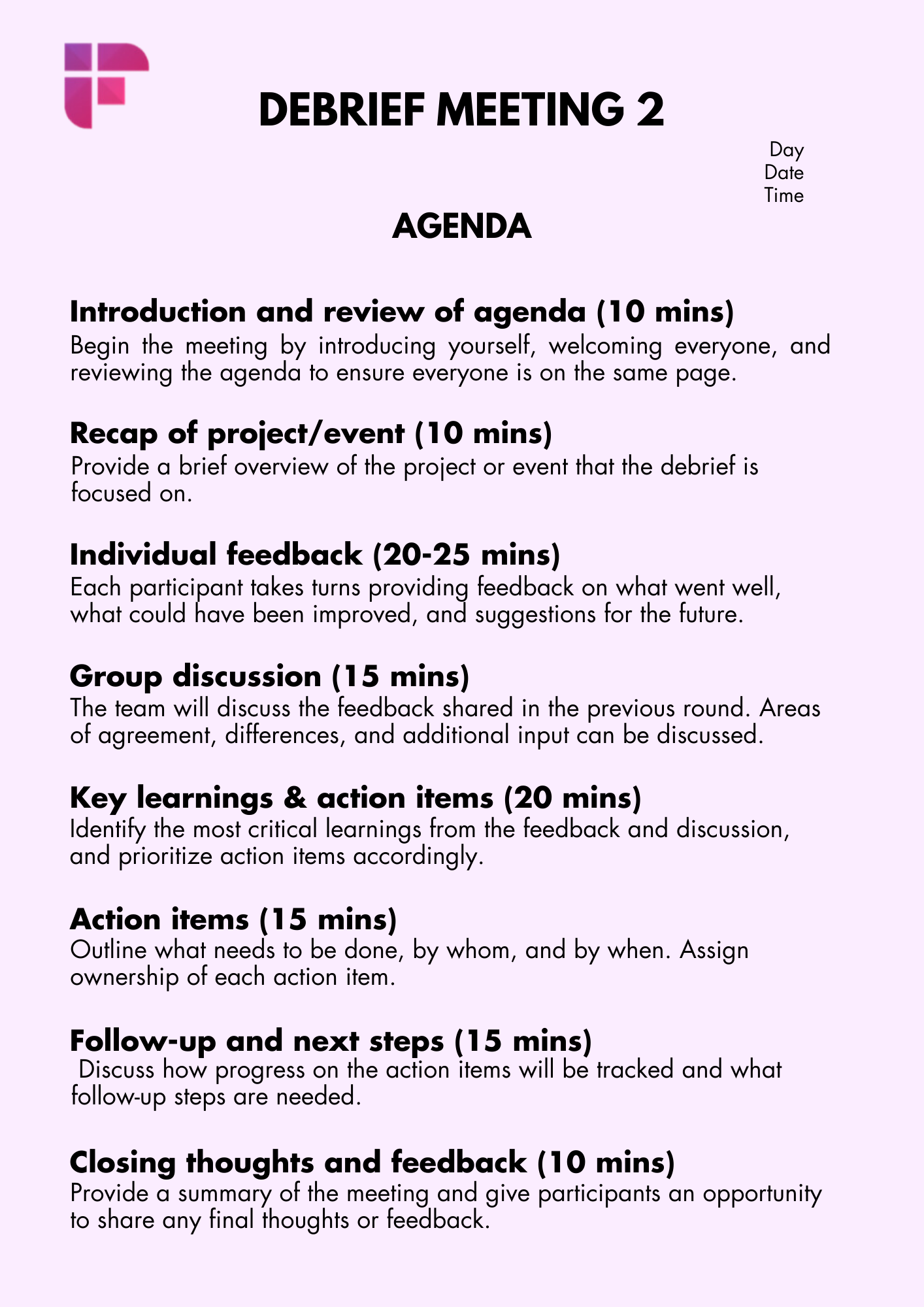 Templates for debrief meeting agenda