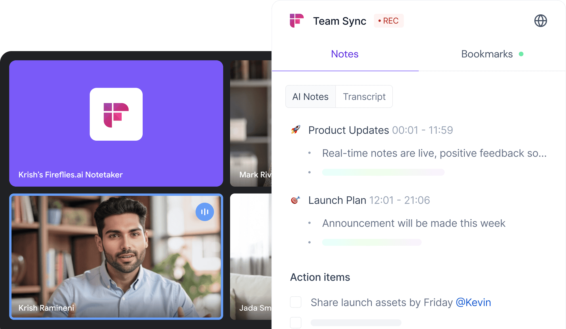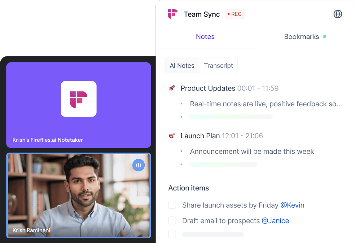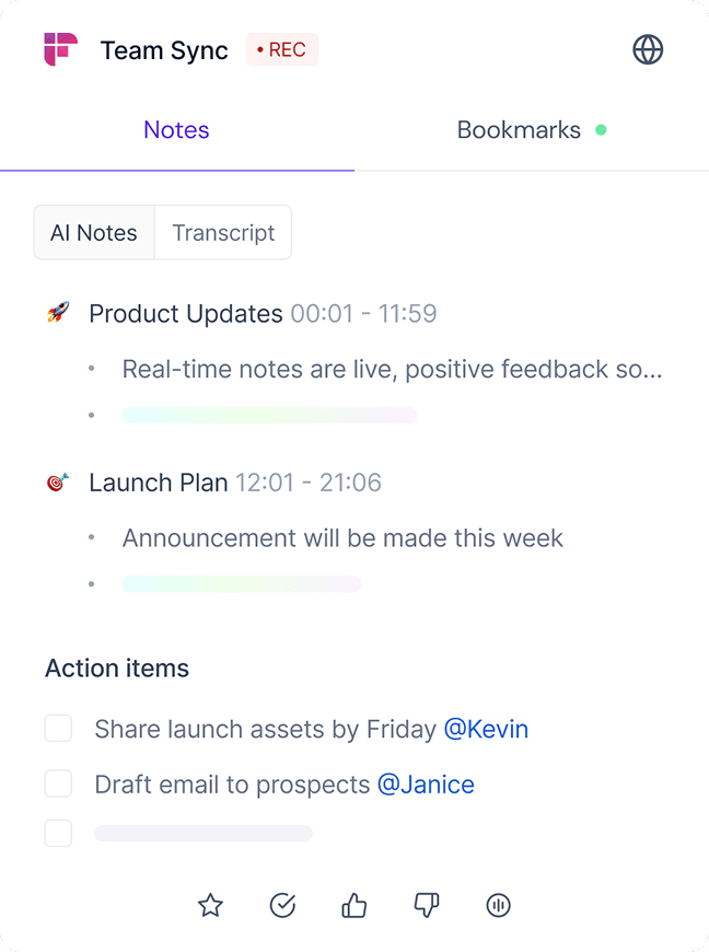 Get live transcripts, instant notes, and action items as your meetings happen.